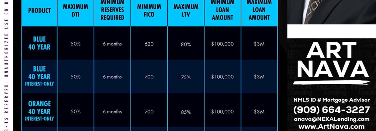 40 YR. OPTIONS - Art Nava -Mortgage AdvisorHi, my name is Art Nava. I’m a Loan Officer with NEXA Lending LLC., offering personalized mortgage solutions, fast customized quotes, great rates and service with integrity.