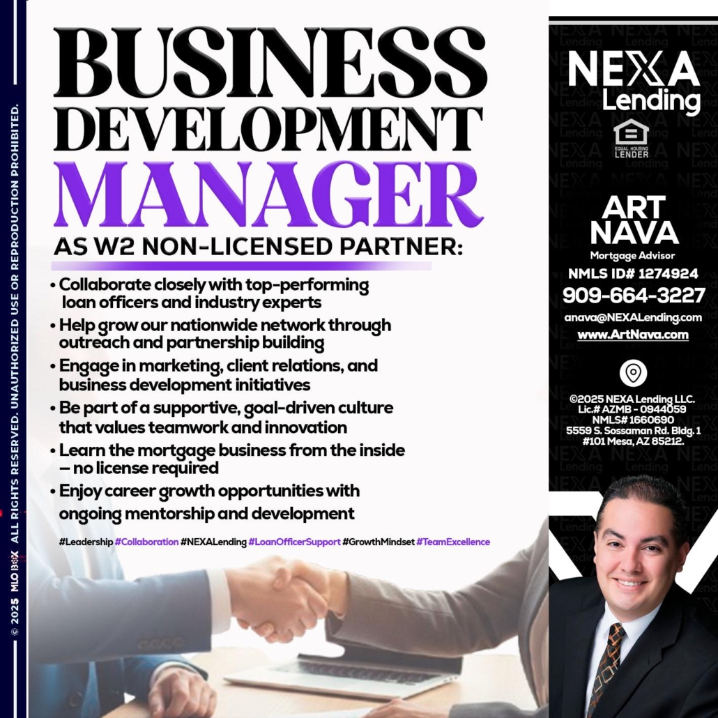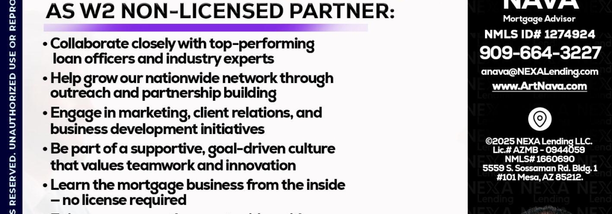 Hi, my name is Art Nava. I’m a Loan Officer with NEXA Mortgage LLC., offering personalized mortgage solutions, fast customized quotes, great rates and service with integrity.