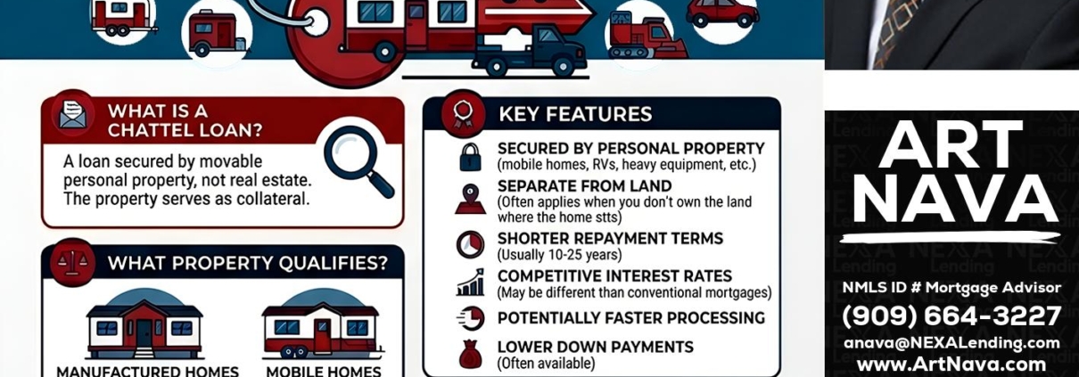 Hi, my name is Art Nava. I’m a Loan Officer offering personalized mortgage solutions, fast customized quotes, great rates and service with integrity. If you’re interested in learning more about the Chattel loan or any other, just let me know and I’ll walk you through your options.