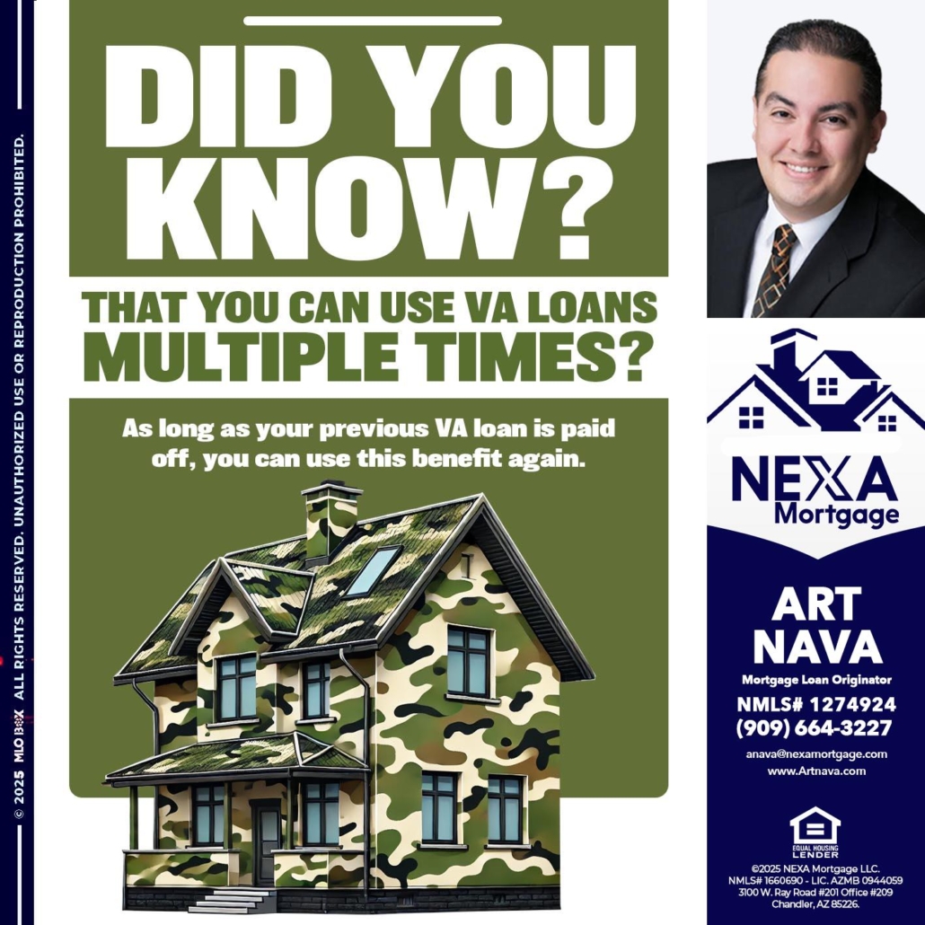 Hi, my name is Art Nava. I’m a Loan Officer with NEXA Mortgage LLC., offering personalized mortgage solutions, fast customized quotes, great rates and service with integrity.