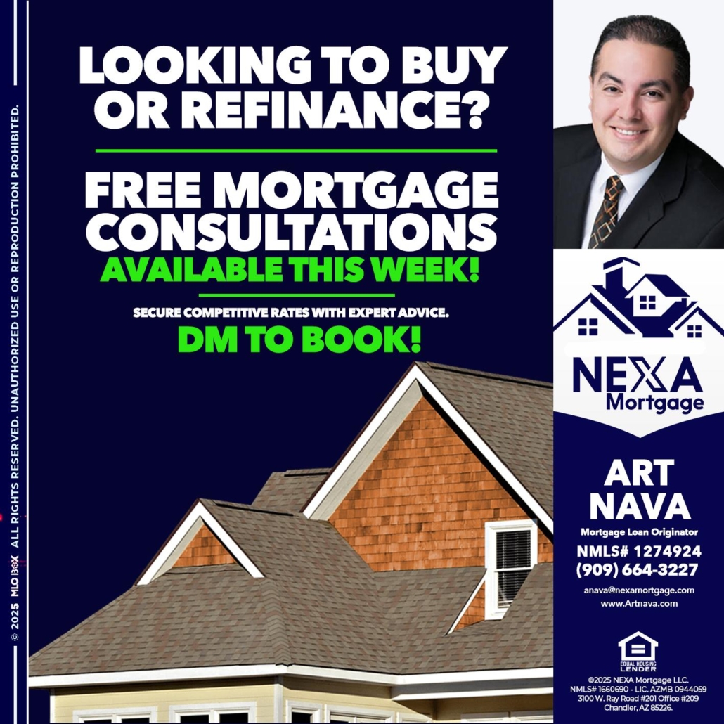 Hi, my name is Art Nava. I’m a Loan Officer with NEXA Mortgage LLC., offering personalized mortgage solutions, fast customized quotes, great rates and service with integrity.