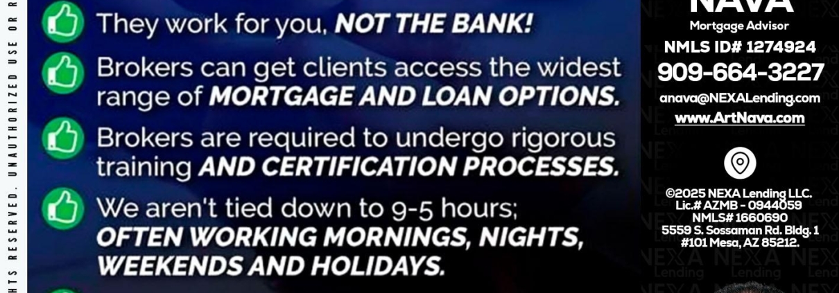 Hi, my name is Art Nava. I’m a Loan Officer with NEXA Lending LLC., offering personalized mortgage solutions, fast customized quotes, great rates and service with integrity.