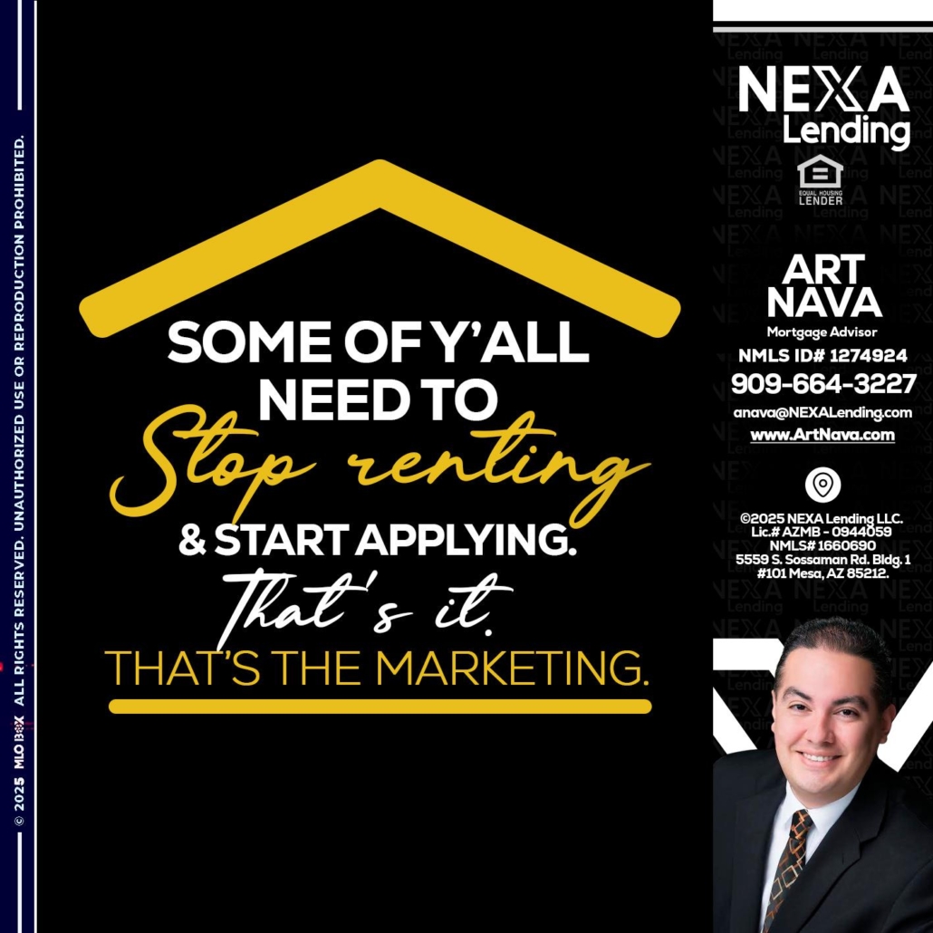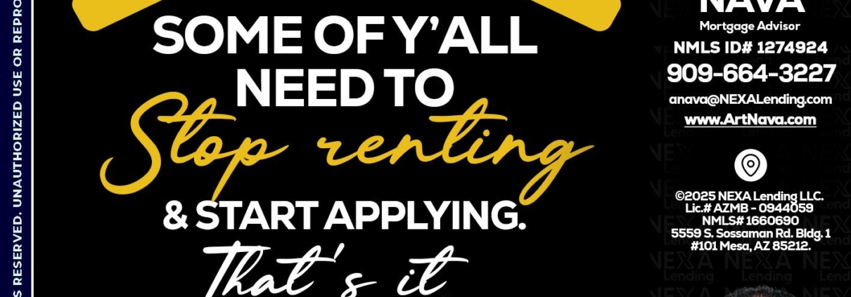 Hi, my name is Art Nava. I’m a Loan Officer with NEXA Mortgage LLC., offering personalized mortgage solutions, fast customized quotes, great rates and service with integrity.