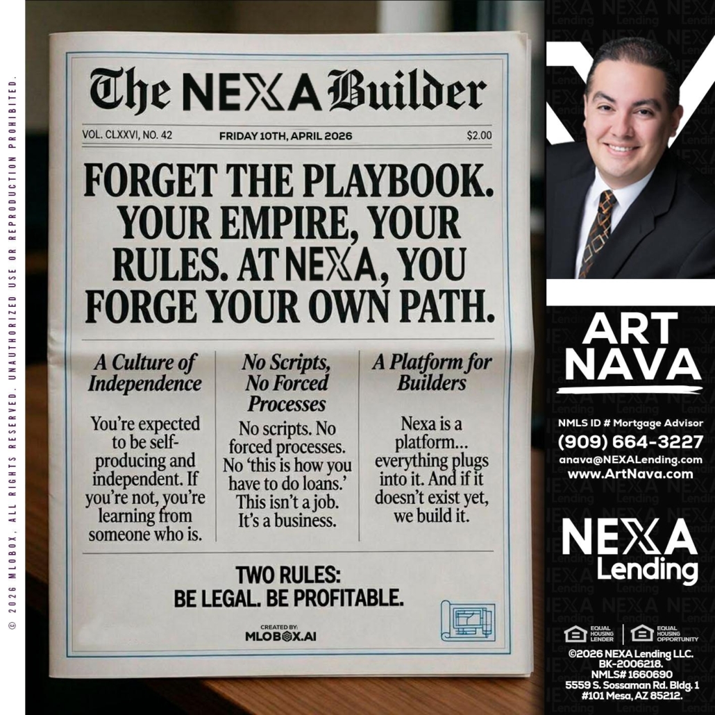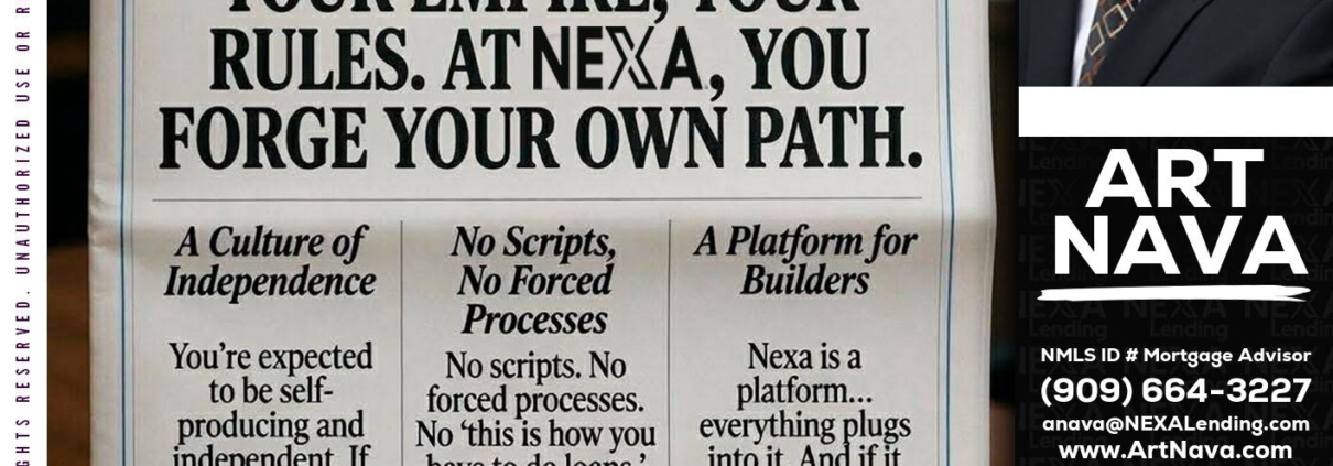 Hi, my name is Art Nava. I’m a Loan Officer with NEXA Lending LLC., offering personalized mortgage solutions, fast customized quotes, great rates and service with integrity.