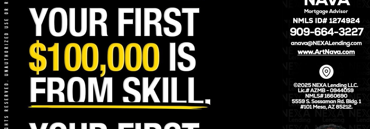 YOUR FIRST $1000 - Art Nava -Mortgage AdvisorHi, my name is Art Nava. I’m a Loan Officer with NEXA Lending LLC., offering personalized mortgage solutions, fast customized quotes, great rates and service with integrity.
